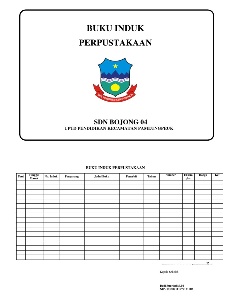 Dec 15, 2020 · format buku induk guru dan pegawai terbaru pada intinya buku induk merupakan buku yang berisi catatan pribadi atau identitasi penting seorang pegawai guru dengan tujuan agar data nya mudah dicari dan bisa juga diabadikan buku induk biasaya di isi oleh pegawai tenaga kependidikan atau guru yang diberi tugas tambahan oleh kepala sekolah untuk mengisi buku induk.