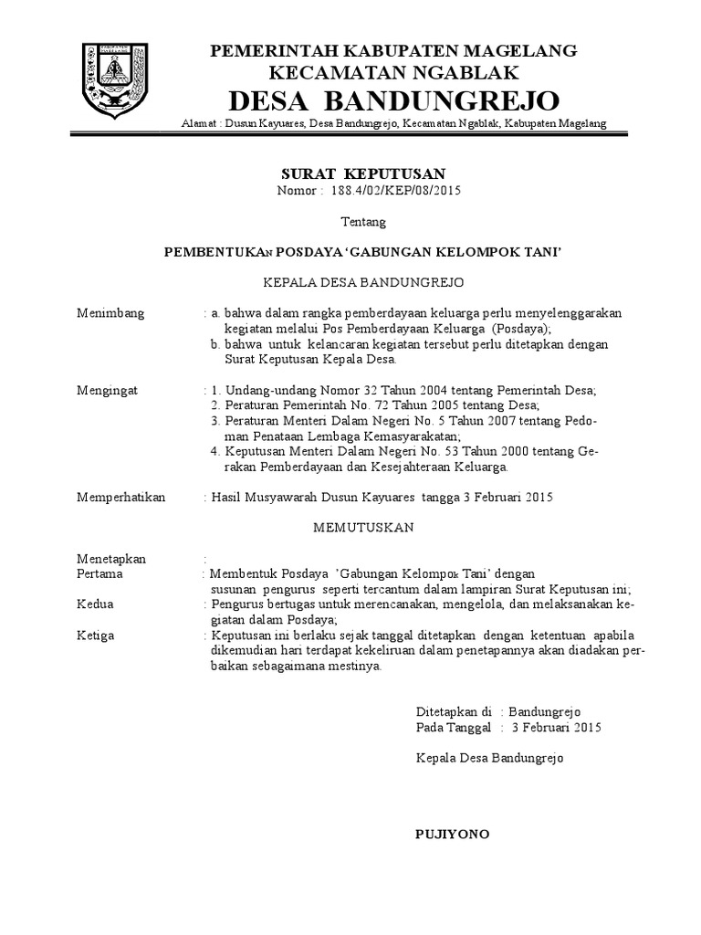 Surat keputusan kepala desa tanjungwangi. Fungsi kelompok tani dan gapoktan. Tani (gapoktan) harus melalui surat keputusan kepala desa. Sk pkpkd dan ppkd 2020 7. Popular post download, aplikasi pendataan sdgs desa tahun 2021 pakai hp dan komputer pc